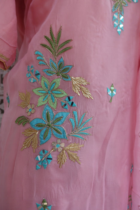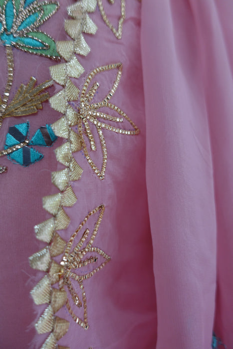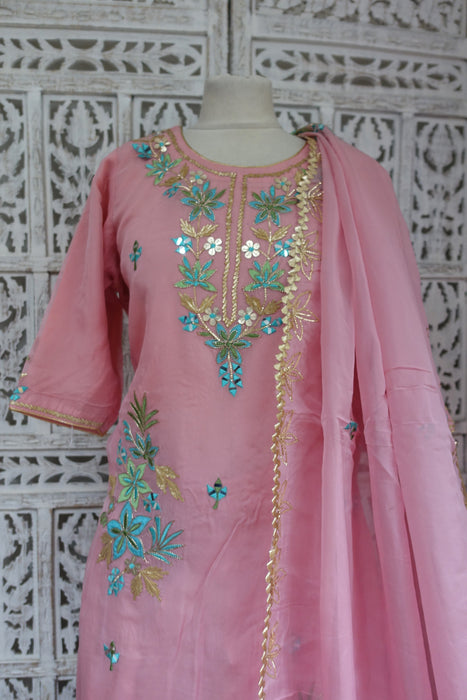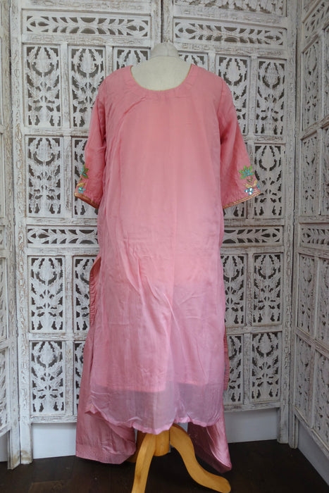 Pink Voile Floral Salwar Suit - UK 20/EU 46 - Preloved