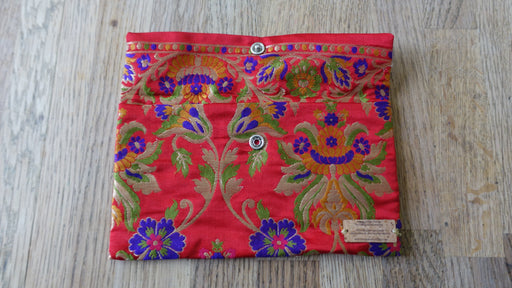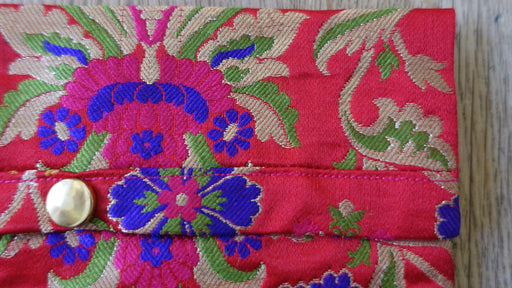 Colour : red Fabric : brocade Measurements : 11 x 19.5cm Description : this is made from reclaimed brocade