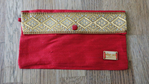 Red Raw Silk With Antique Gold Braid Trim Envelope