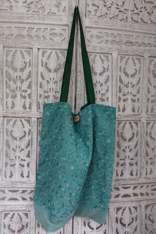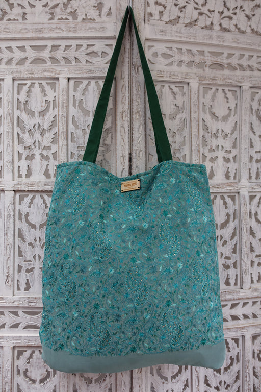 Sage Green Chiffon With Rhinestones Tote Bag - New