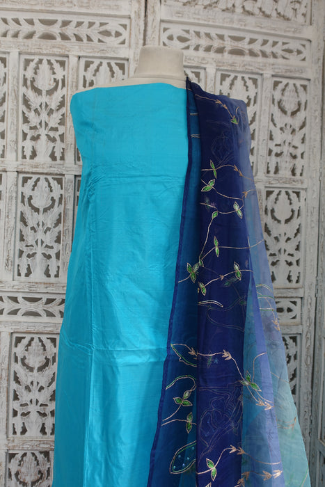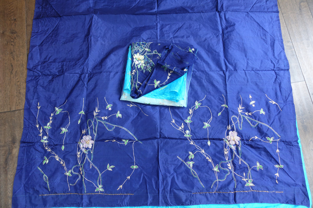 Light Blue And Dark Blue Vintage Silk Suit - New