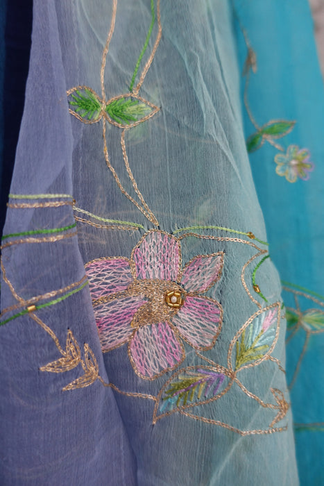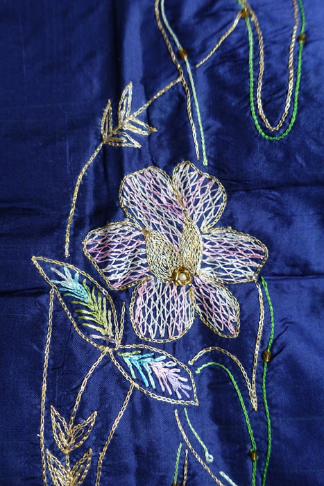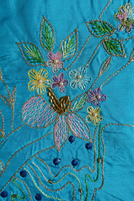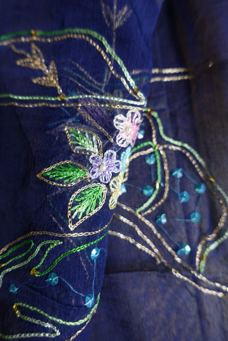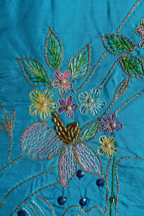 Embellishments: silk thread embroidery, gold tilla, sequins and beads