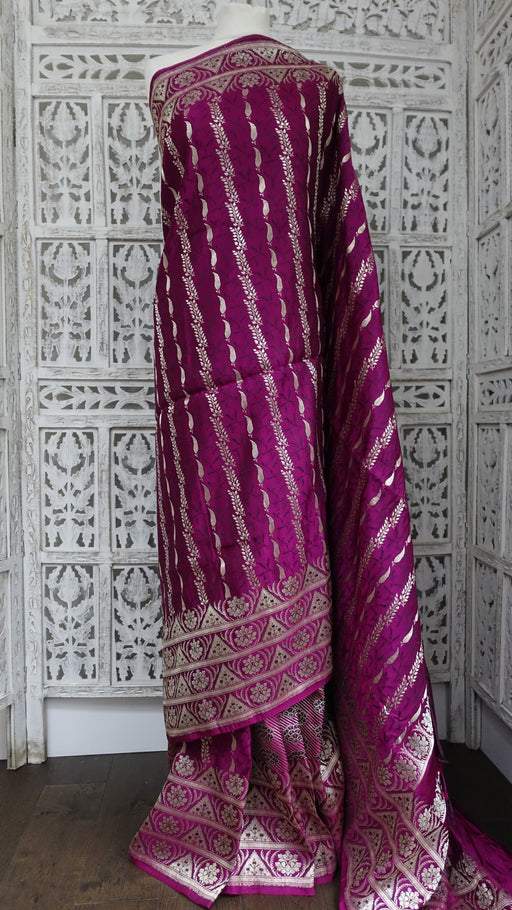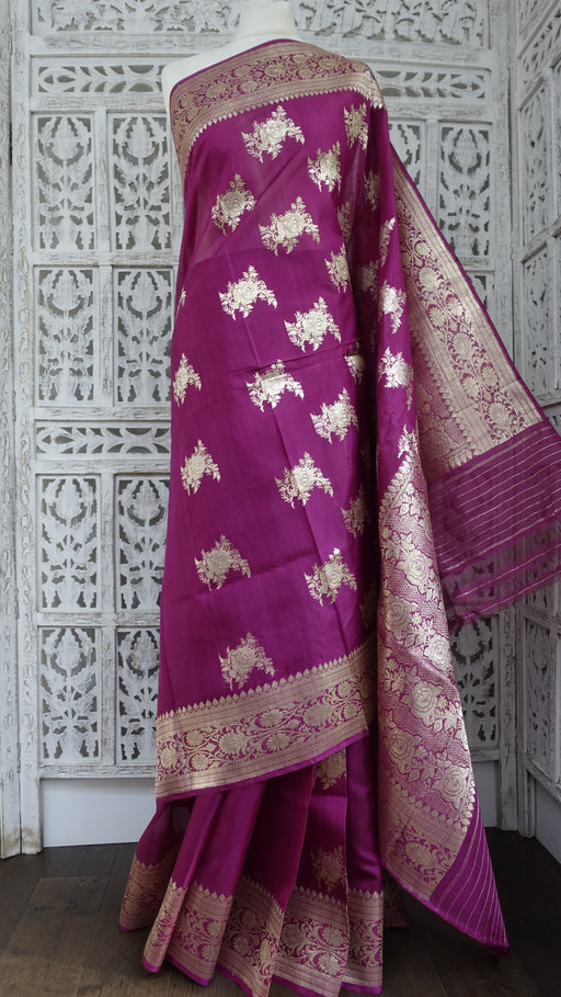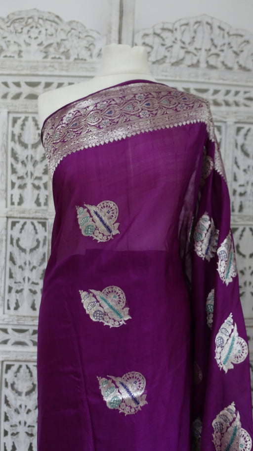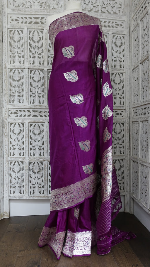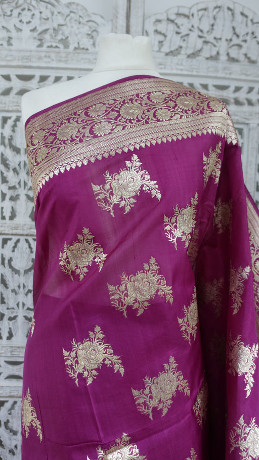 Vivid Purple Vintage Banarsai Brocade Sari - New