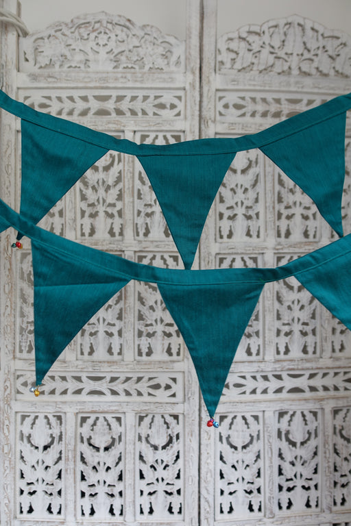 View full detailsTeal Silk Blend With Multi Coloured Bells Bunting - New