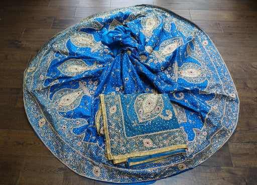 Peacock Blue Silk Vintage Lengha - Free Size - Preloved