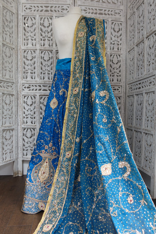 Peacock Blue Silk Vintage Lengha Skirt And Dupatta - Preloved