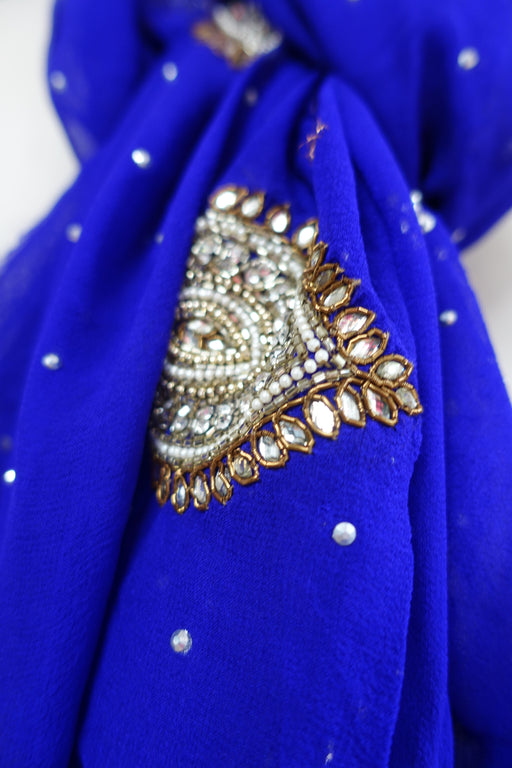 This is a heavy chiffon dupatta, it has large embellished motifs all over, these are made up of zardosi, different types of beads and sparkling dia...