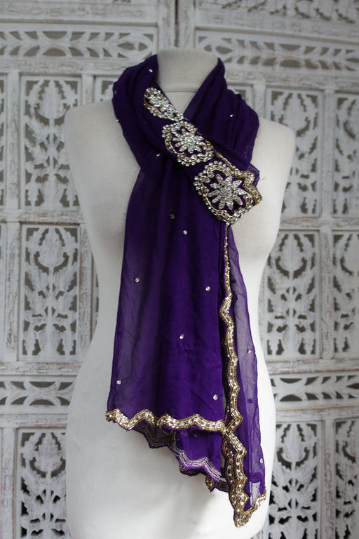 Purple Diamante Dupatta - New