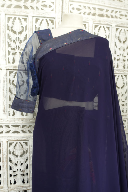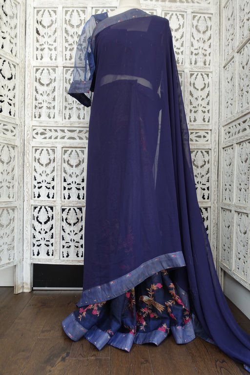 Navy Blue Floral Sari With Blouse To Fit 38 Bust - New