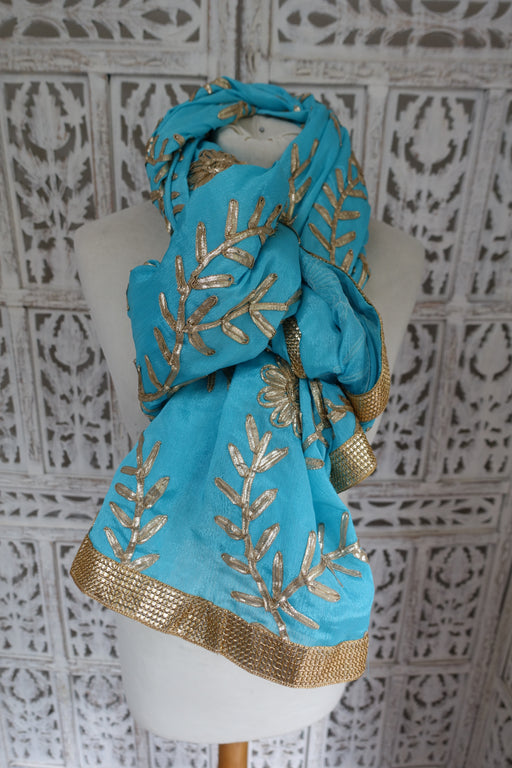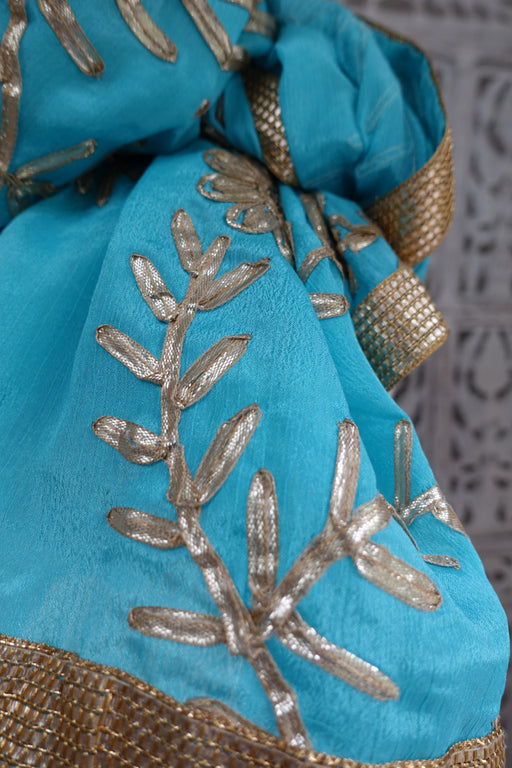 Blue Crepe Gota Worked Crepe Dupatta - New