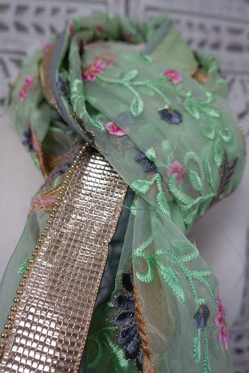 View full detailsLight Green Voile Floral Embroidered Dupatta - New