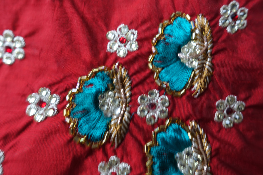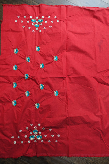 This is a raw silk effect piece of fabric, it has small flowers embroidered and finished with little beads, some missing,