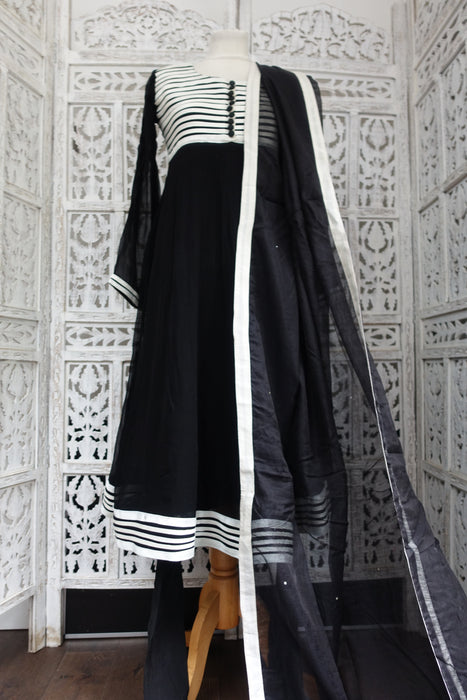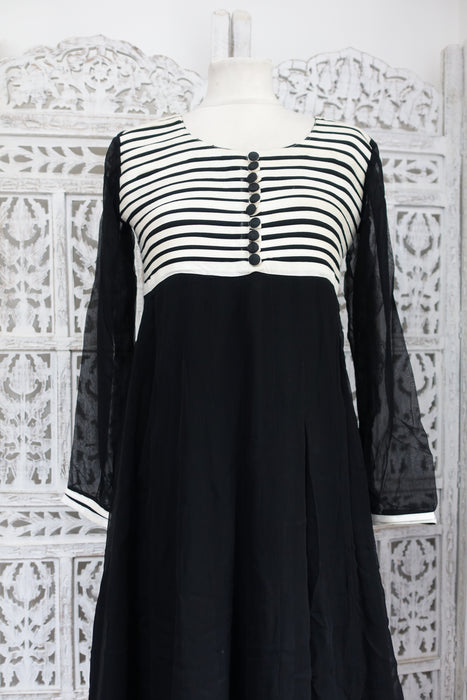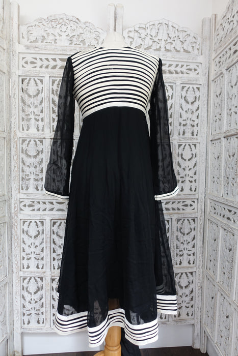 Black And White Chiffon Anarkali Frock - UK 10 / EU 36 - Preloved