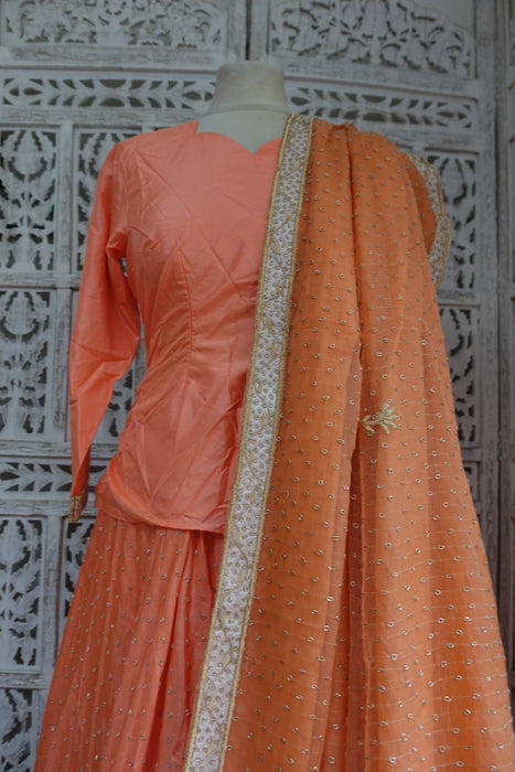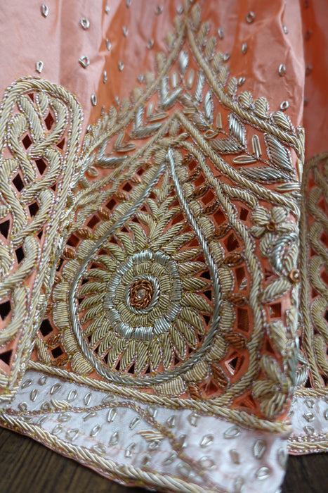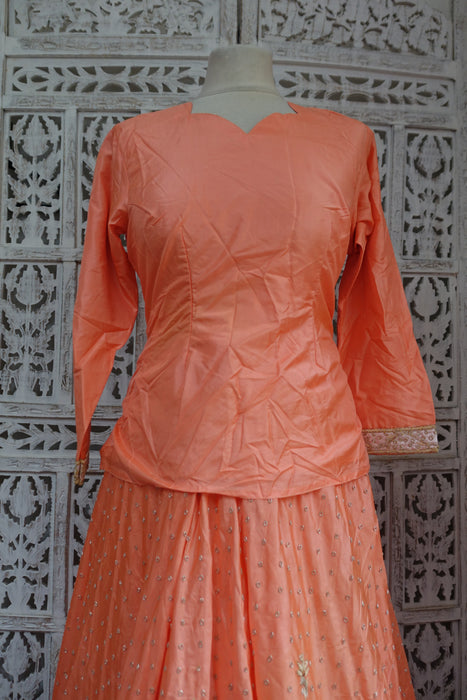 Peach Silk Vintage Wedding Lengha - UK 12/ EU 38 - New