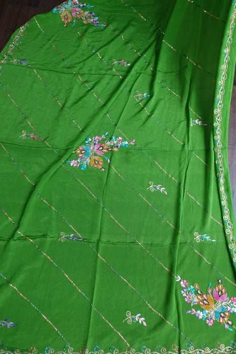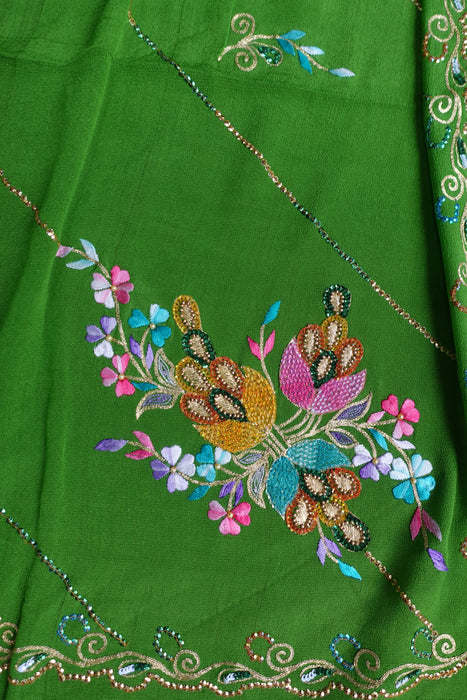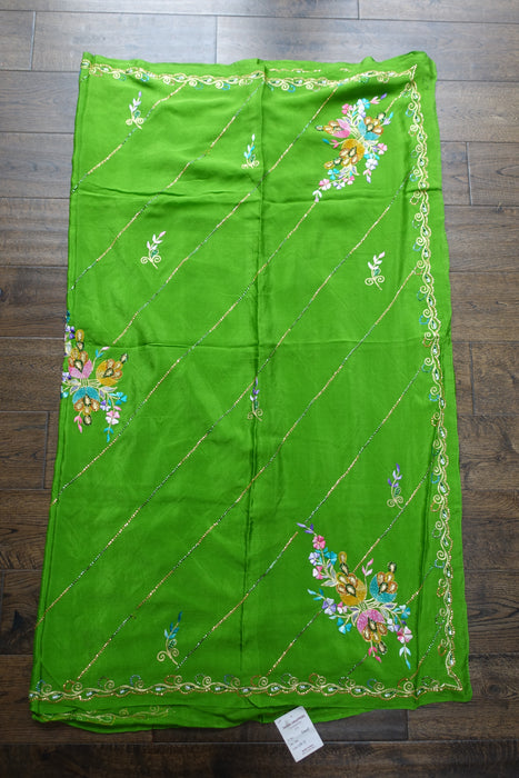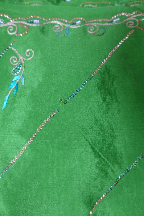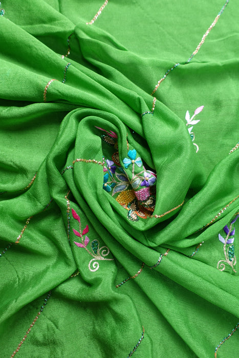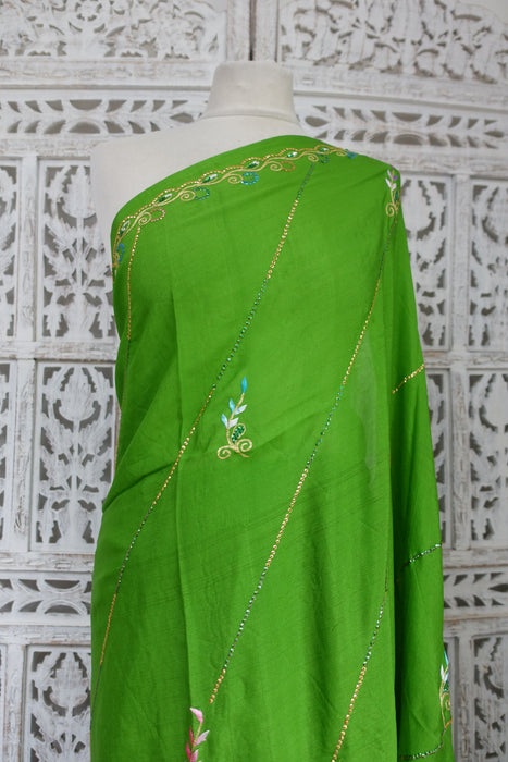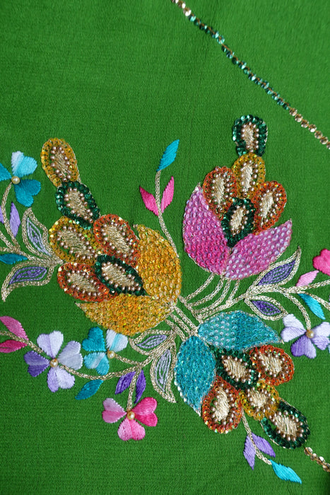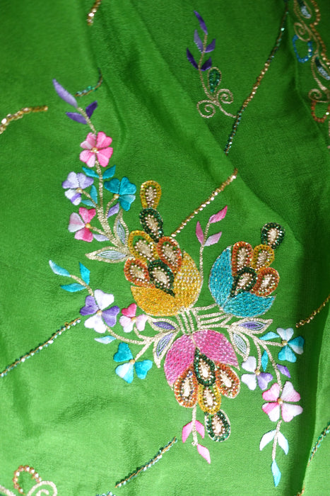 Parrot Green Pure Lightweight Silk Embroidered Vintage Sari - New