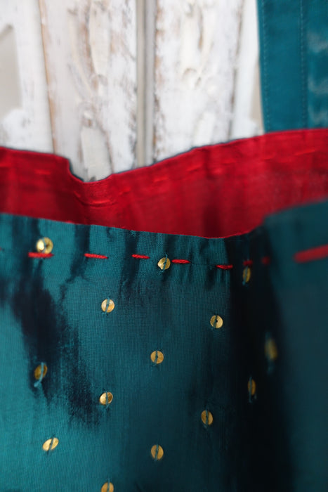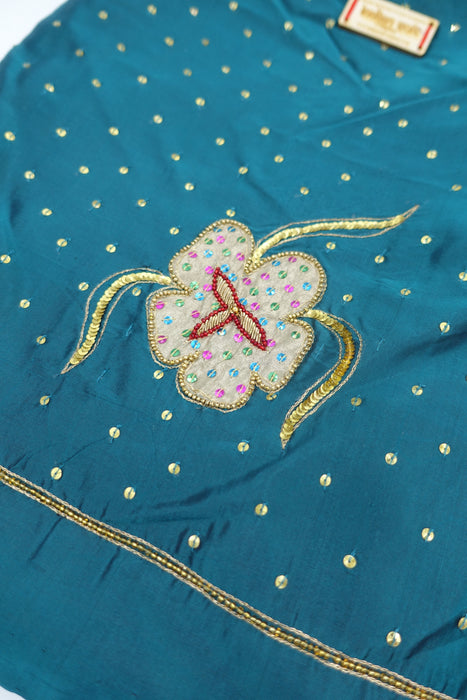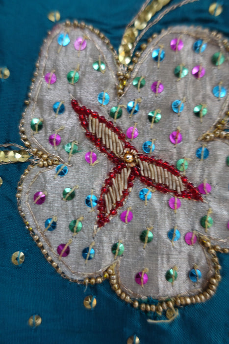 Teal Silk Blend Bag With Cream Zardosi - New