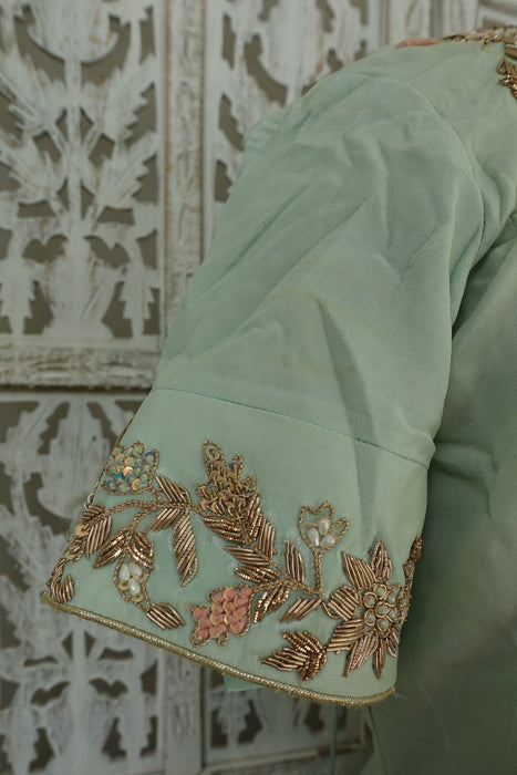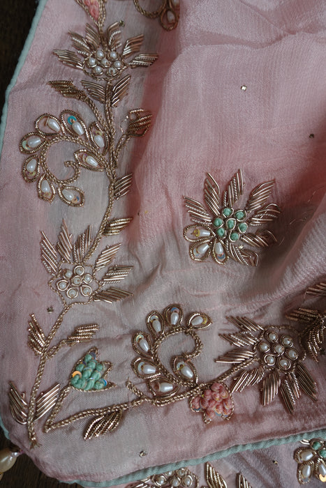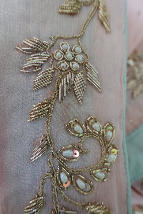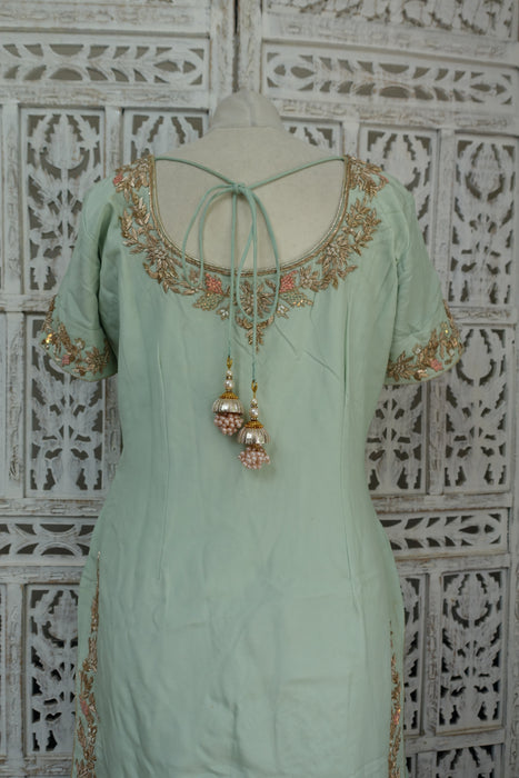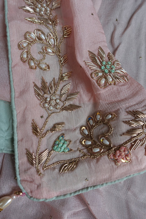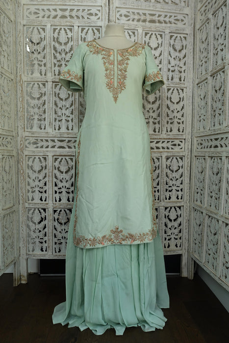 Mint Green And Pink Silk Lengha - UK 10 / EU 36 - Preloved