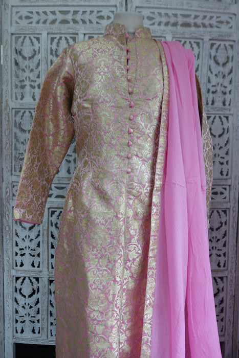 Pale Pink Brocade Churidaar Suit - UK 16 / EU 42 - New