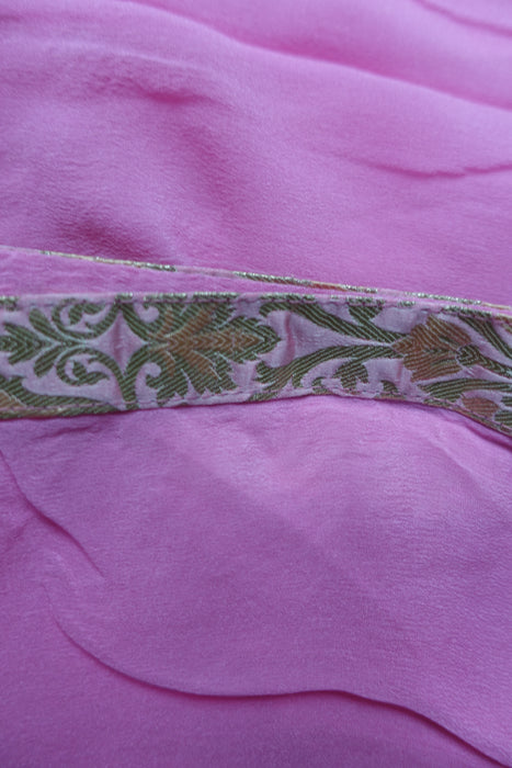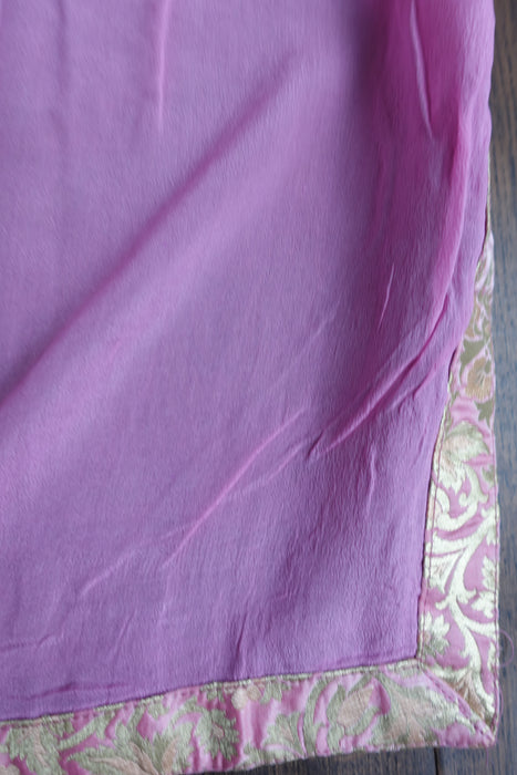 Dupatta is made of silk chiffon and has a contrasting brocade trim around the edges.