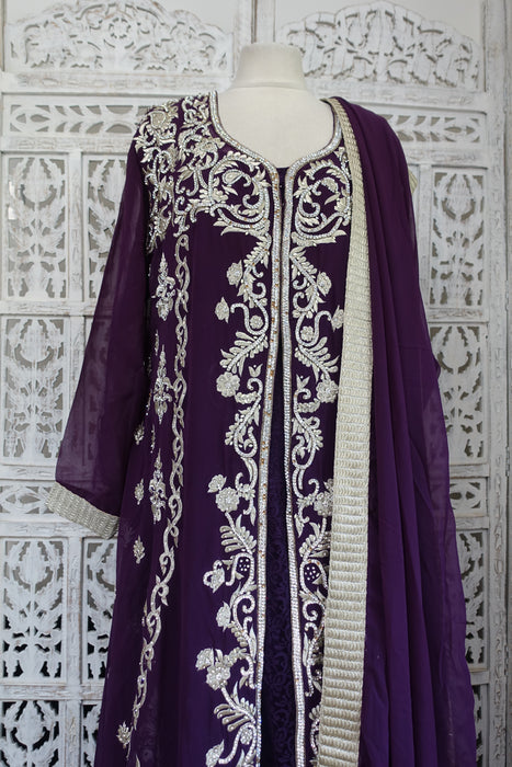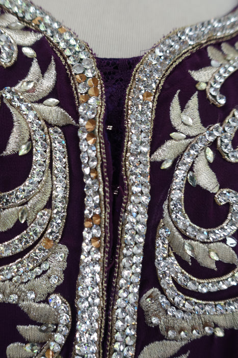 Purple Diamante Long Gown 4Pc - UK 24 / EU 50 - Preloved