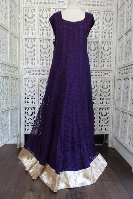 Kameez is a sleeveless lace panelled dress, this is fully lined and has a gold braid trim along the hem.