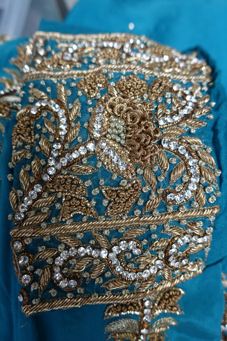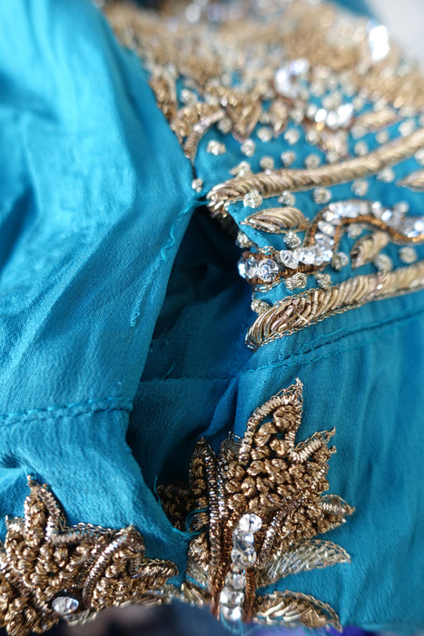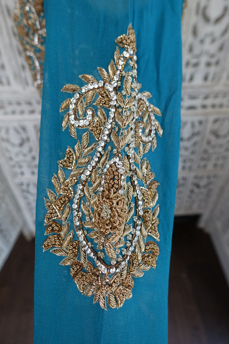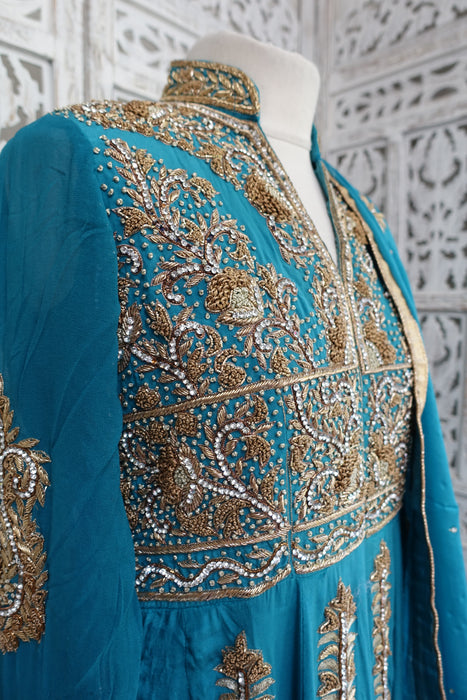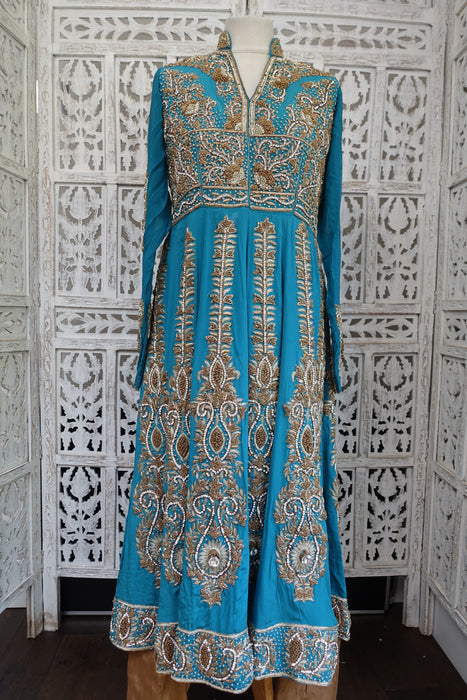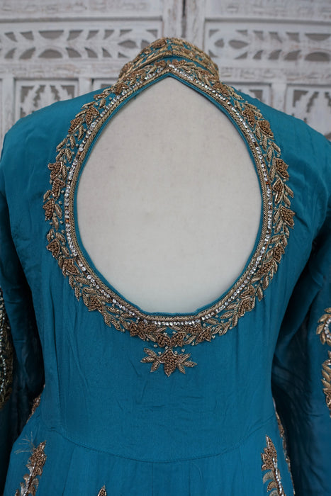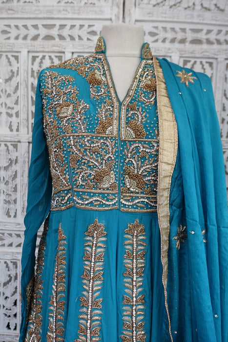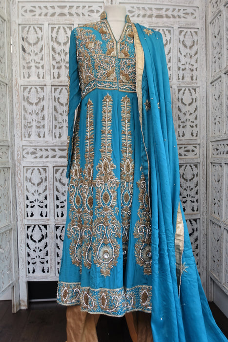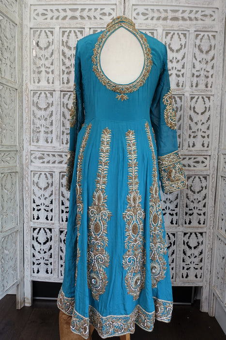 Blue Silk Diamante Embellished Anarkali - UK 10 / EU 36 - Preloved