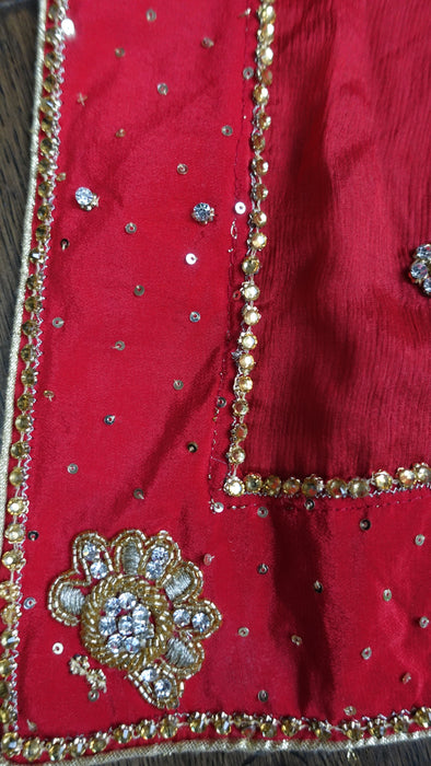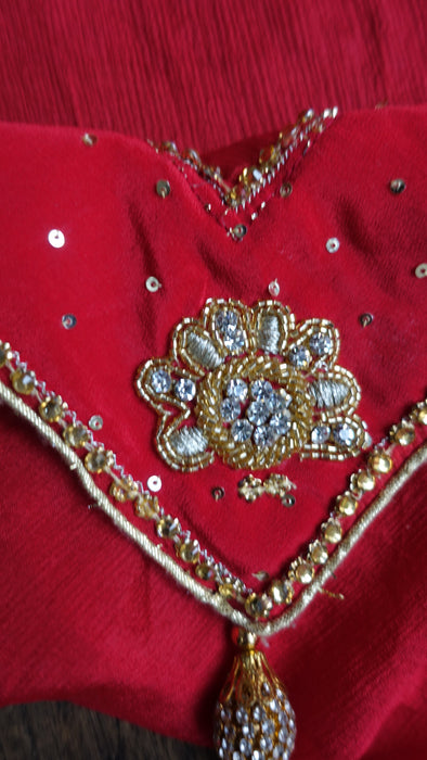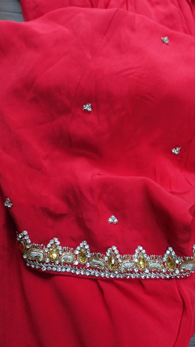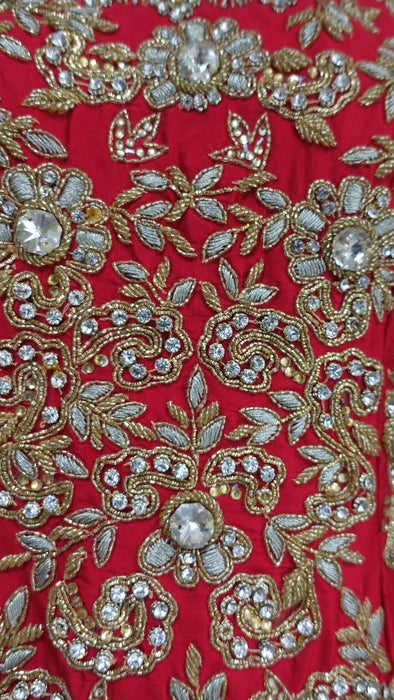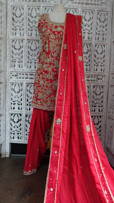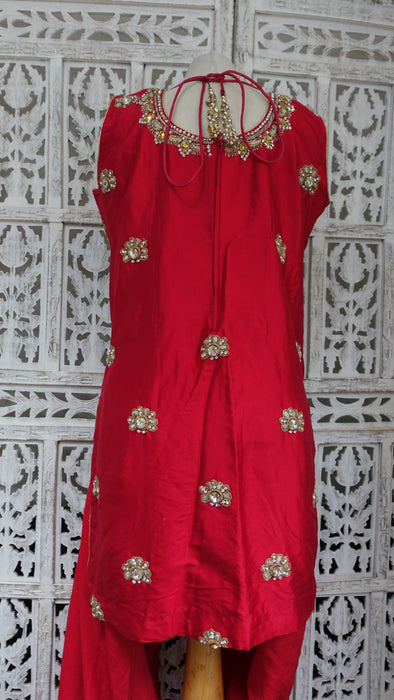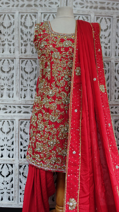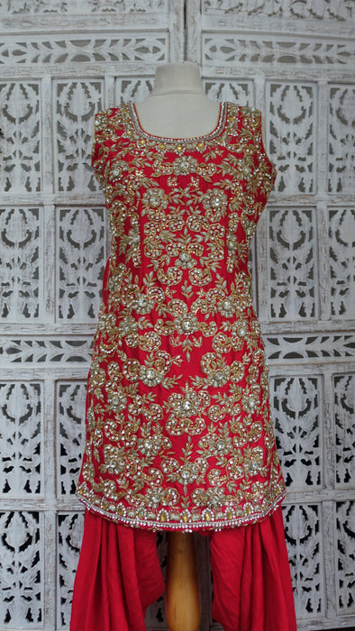 Red Silk Heavy Diamante Salwar Suit - UK 14/EU 40 - New