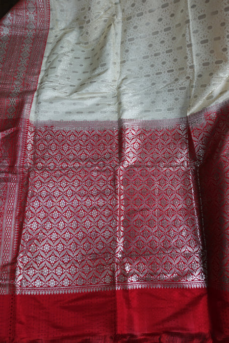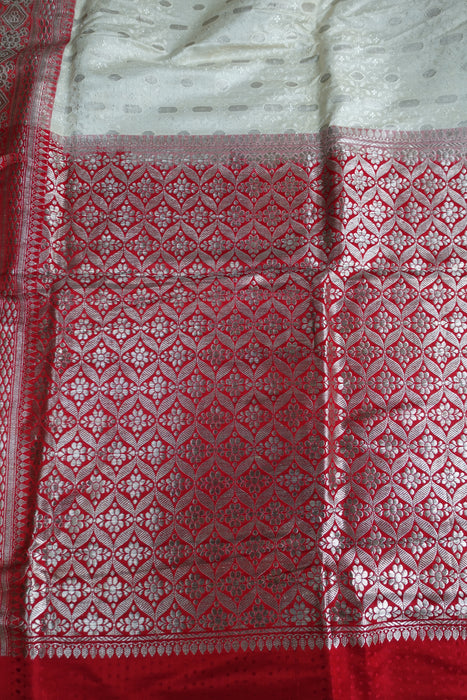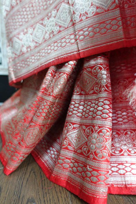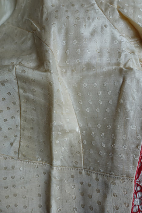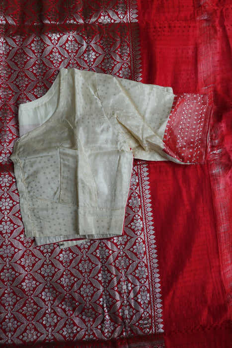 This is a brand new cream and red vintage silk sari, it has a running blouse attached to one end. It is around 30 years old, it was part of vintage bridal trousseau and is in excellent condition.