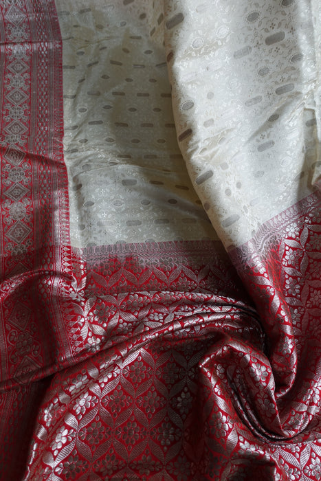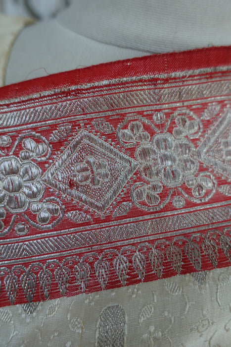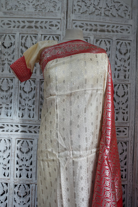 Cream And Red Vintage Sari Including Blouse - New
