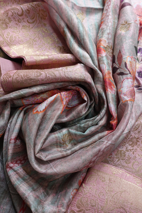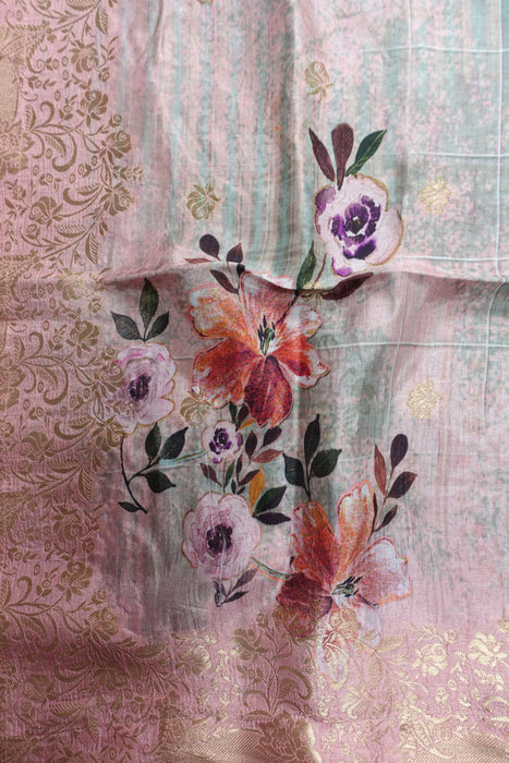 Pink Chanderi Silk Flower Print Shawl - New