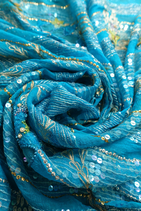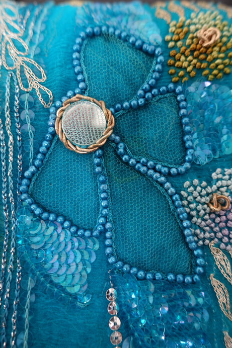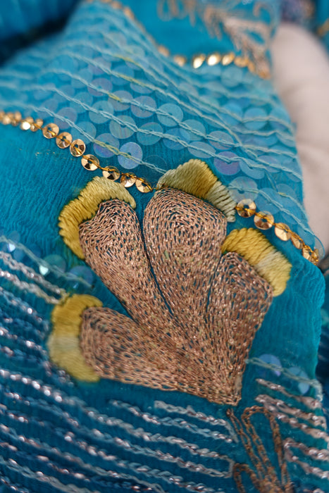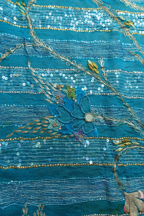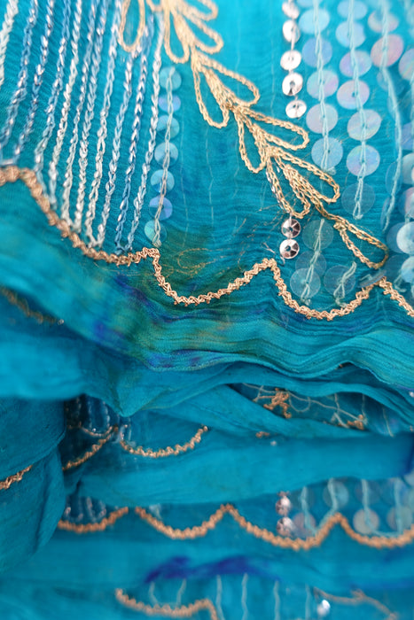 Blue Vintage Silk Chiffon Dupatta - Preloved