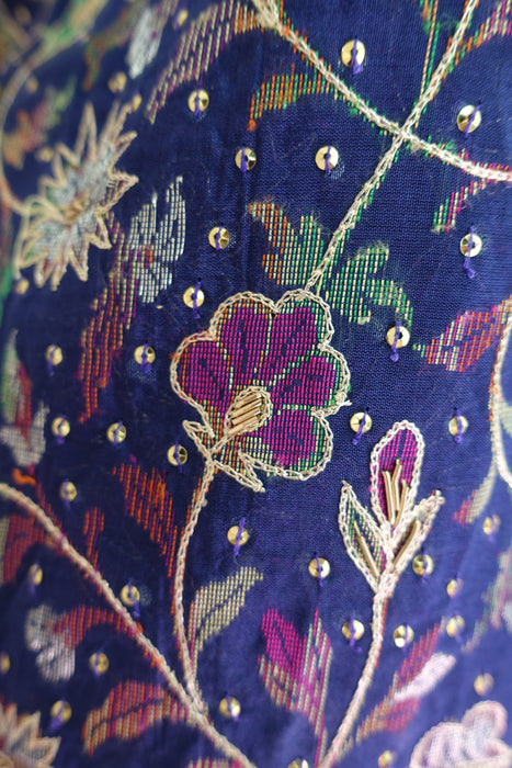 Embellishments: silk thread embroidery and lots of tilla work and gold sequins.