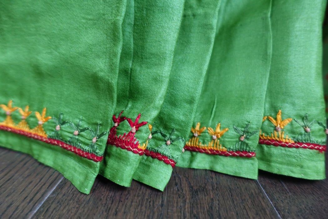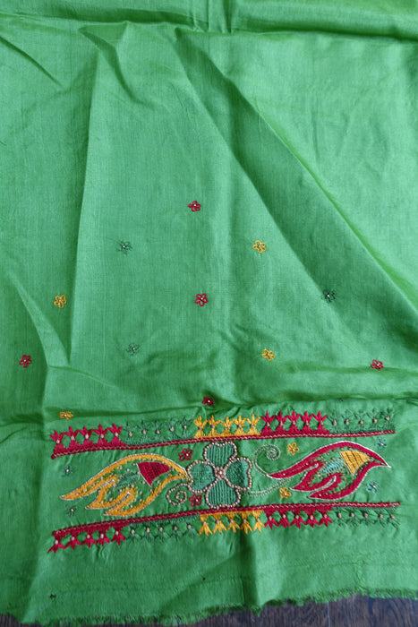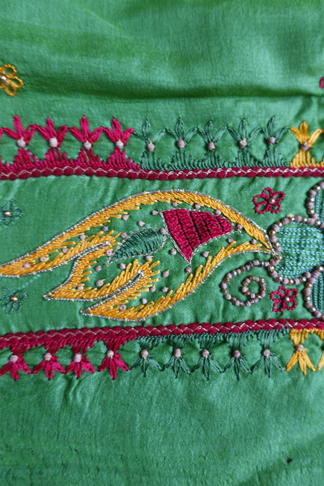 Bright Green Pure Tissue Silk Vintage Sari With Blouse - New