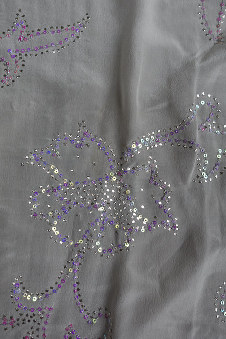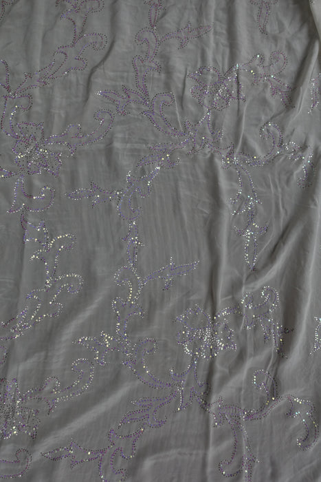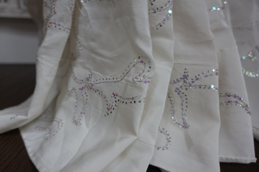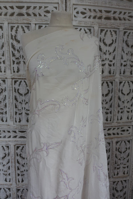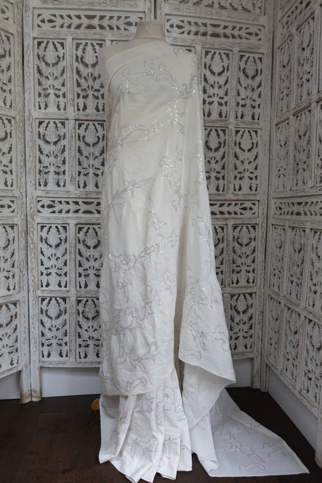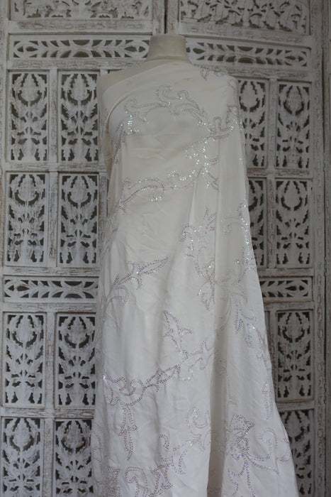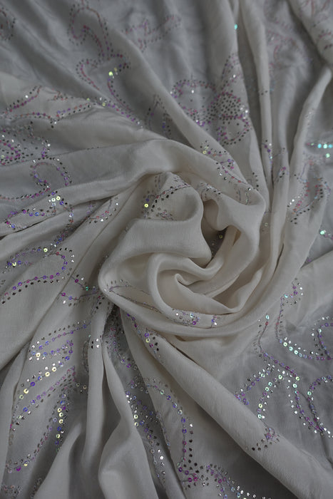 White Pure Silk Mukesh Sari With Iridescent Sequins - Preloved