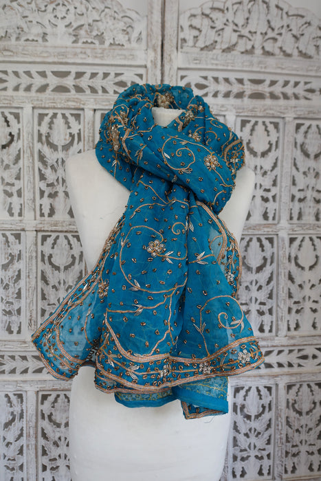Peacock Blue Vintage Dupatta - Preloved