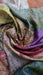 Embrace the artistry of this unique, pure silk patchwork scarf, featuring a rich tapestry of colours and patterns.
