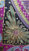 Description: A striking, heavily embroidered vintage saree featuring large, detailed paisley and geometric motifs. The rich black base is dramatically contrasted with vibrant shades of magenta, purple, olive green, and turquoise, accented with shimmering gold sequins and thread work. This piece is bold and festive. It does have a few marks on it, mostly on the unembellished parts and will not be noticeable when worn.