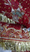 Product detail – this is a vintage traditional vintage red wedding dupatta, it is heavily embellished in a variety of small glass coloured beads, silver zardosi, gold sequins, braid work in both gold and silver sitting in white fabric appliques in a paisley design. The outer edges are finished with gold gota.
