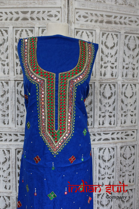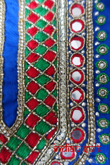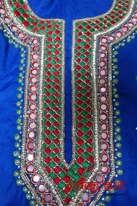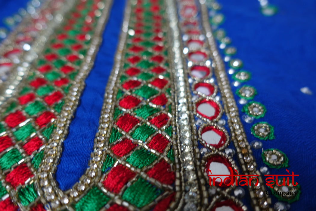 The neckline is much more detailed with little beads. sequins. sparkling stones and faux mirror work.
