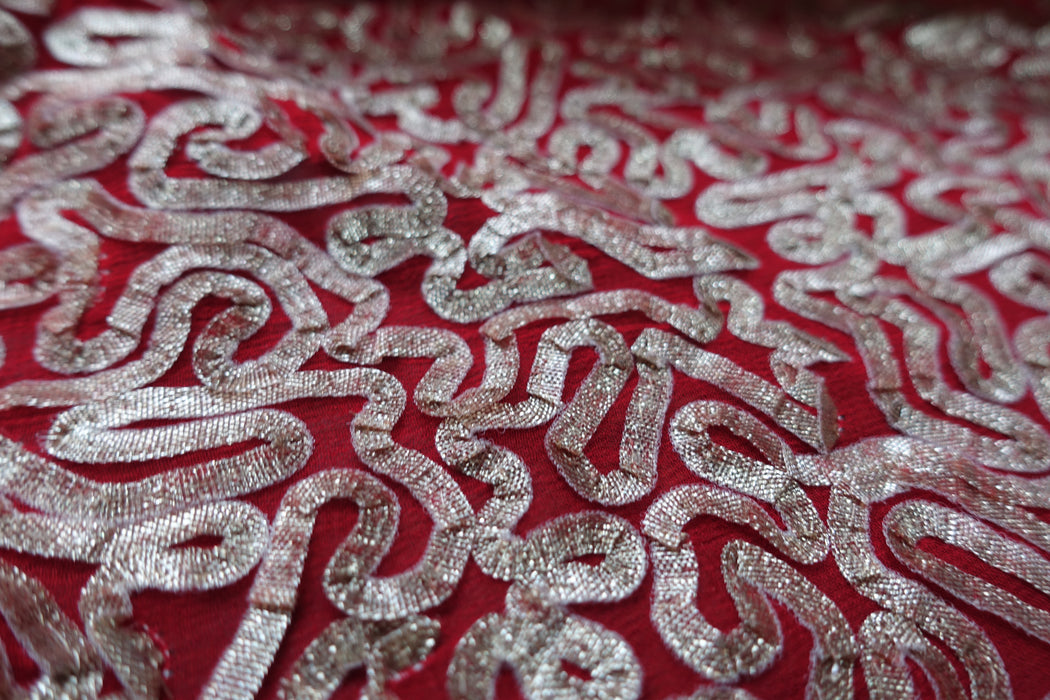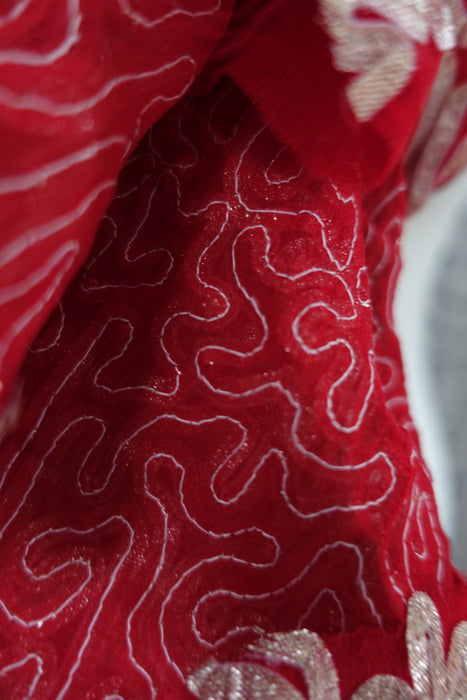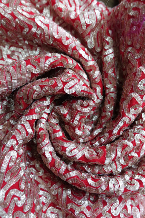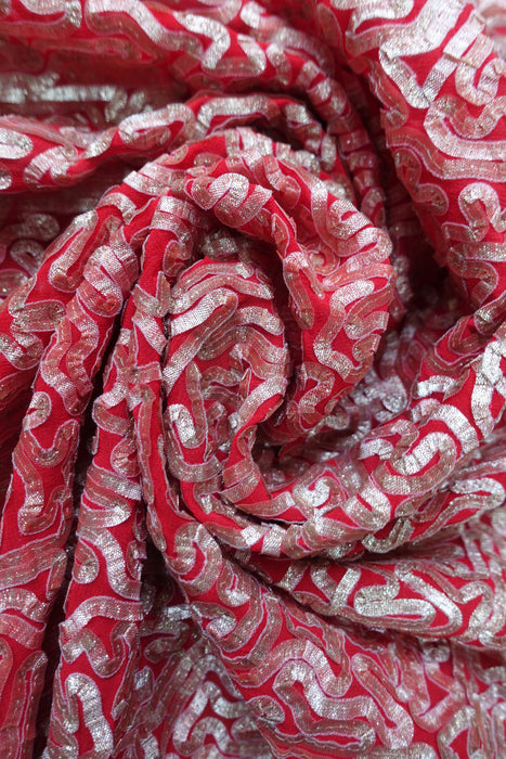 Red Braided Chiffon Fabric 2.6 Metres - New