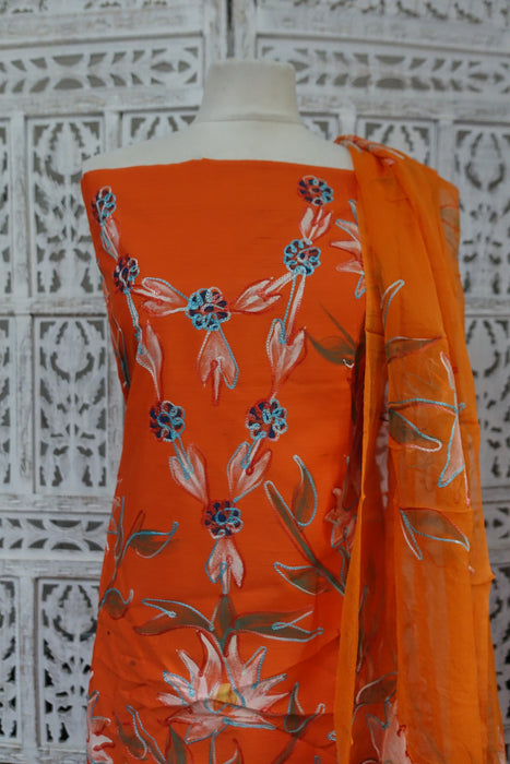 The fabric is 86cm x 4 metres and the dupatta is 91 x 166 dupatta.
