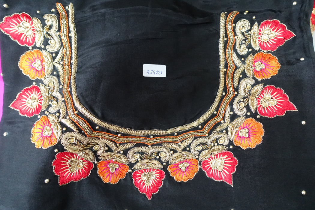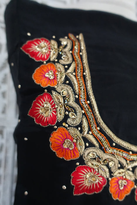 Black Matka Silk Unstitched Suit - New