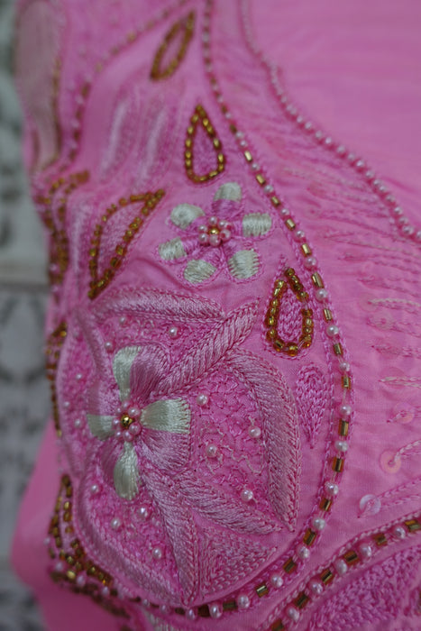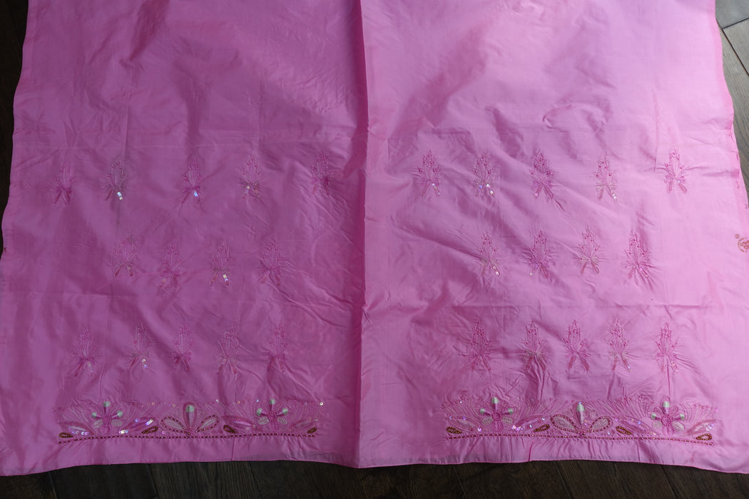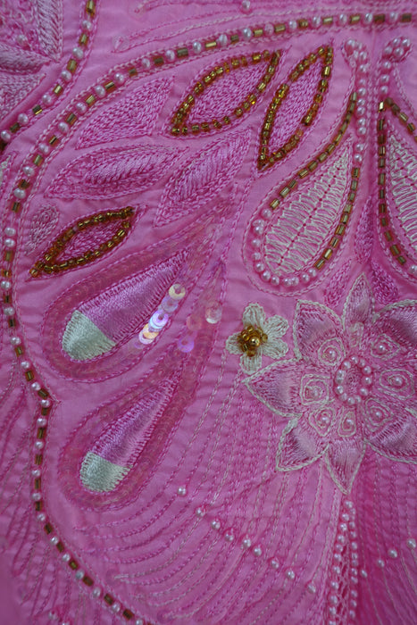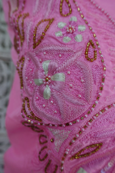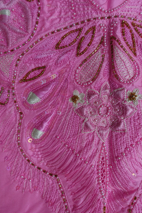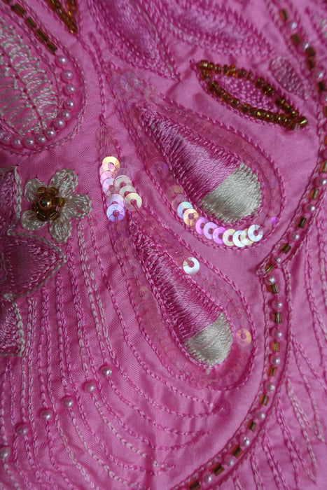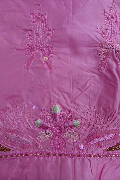 Pink Vintage Embroidered Pure Silk Unstitched Suit- New