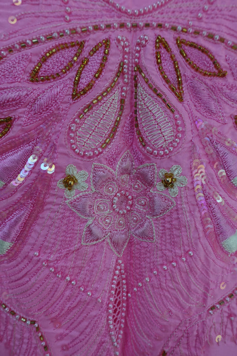 Description - this a vintage pink pure silk with silk thread embroidery and beadwork in pink and gold as well as lots of translucent sequins. The dupatta is not included. The kameez neckline and salwar hems are outlined.